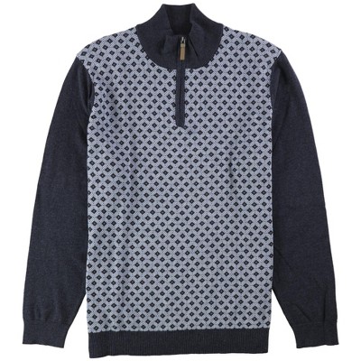 Tasso Elba Mens Patterned Quarter Zip Knit Sweater