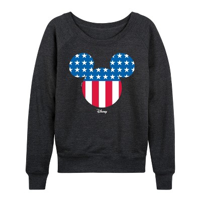 Women's - Disney - Mickey Silhouette American Flag Lightweight French Terry Wide Neck Long Sleeve Graphic Shirt