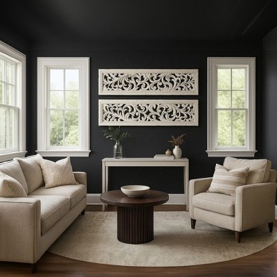 Royal Hampton Carved Wall Art Panel Set of 2, Handcrafted Distressed White Mango Wood, 50 Inch Tall