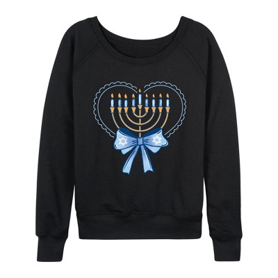 Women's - Instant Message - Coquette Menorah Lightweight French Terry Wide Neck Long Sleeve Graphic Shirt