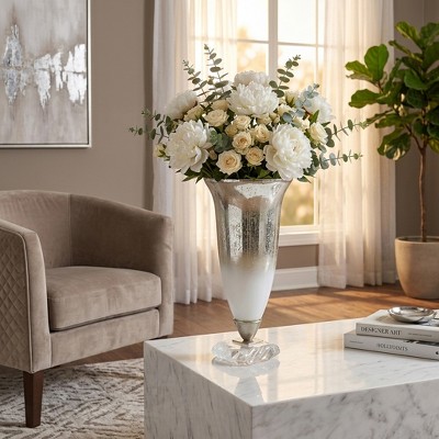 Glass Vase with Glam Metallic Finish, Elegant Aluminum and Glass, Modern Decorative Accent for Home, Office, Bedroom, or Living Room - 18" Silver