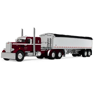 Peterbilt 351 with 36" Sleeper & 34' Wilson Pacesetter Grain Trailer Dark Cherry w/Stripes 1/64 Diecast Model by DCP/First Gear