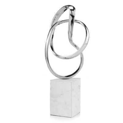 Decorative Marble Double Ring Chain Sculpture for Home Decor - Ornament Sculpture for Coffee Table, Shelf, and Living Room Decor - 3", Ivory