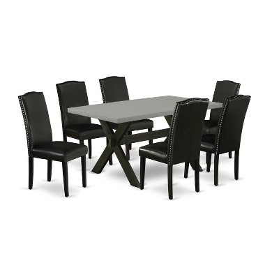 HomeStock 7-Piece Rectangle Black Finish Solid Wood Top Dining Table with 6-Parson Chairs