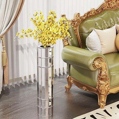 Racxily Floor Vase, Silver Mirror Design with MDF & Glass for Artificial Plants
