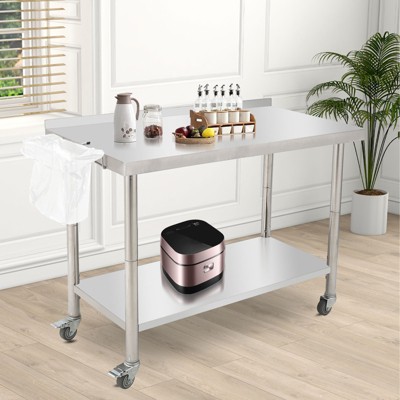 Stainless Steel Prep Table, 201 SS Work Table with Rounded Corners & Adjustable Shelf for Commercial Kitchen Restaurant