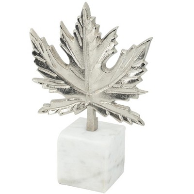 Gulches 7x3x10.5" Aluminum Leaf Marble Base Decor - Holiday Accent for Christmas Home Decor