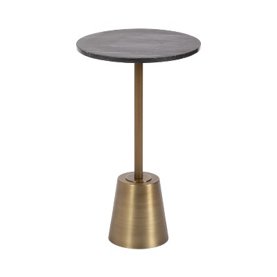 Kate and Laurel Tira Round Marble and Metal Side Table, Black, 14x14x24