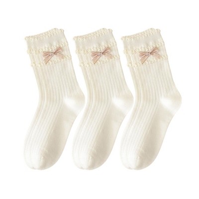 Anna-Kaci 3-Pack Women's Cotton Crew Socks with Ribbed Knit, Satin Bow Accen