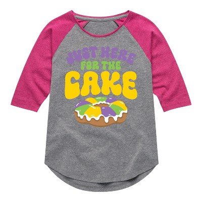 Girls' - Instant Message - Mardi Gras Here For The Cake Shirt Tail Raglan Graphic T-shirt