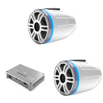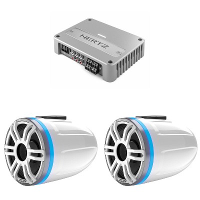 Hertz HTX 8H S-FL-SW-MARINE TOWER HORN 8' Flat Silver-White Sports Grille Pair & Venezia V4 - 4-Channel Marine Amplifier Bundle