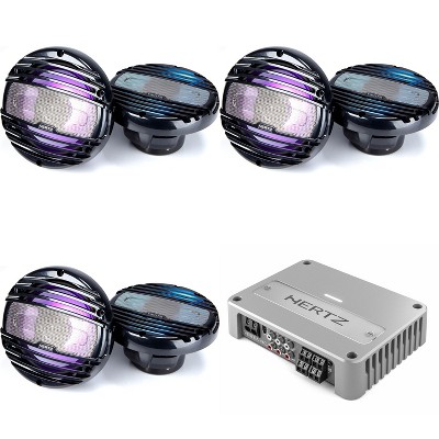 Hertz Marine 8x 6.5" Marine HMX-65-LD-TC & Venezia-Compact-V4 4Ch. Amplifier Bundle