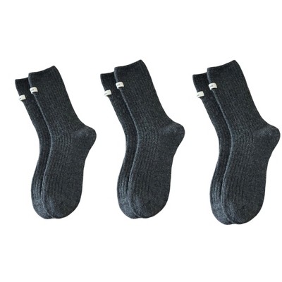 Anna-Kaci Women's 3-Pair Ribbed Crew Socks Set Soft Stretch Knit Fabric Minimal Everyday Comfort Socks - Dark Gray