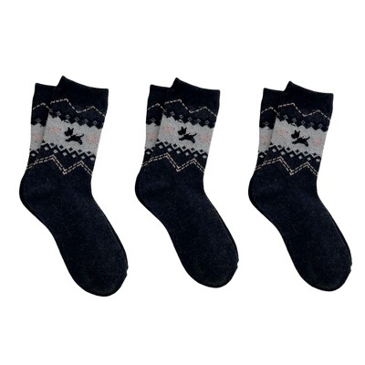 Anna-Kaci Women's 3-Pair Knit Crew Socks with Fair Isle Inspired Leaf and Geometric Pattern - Black