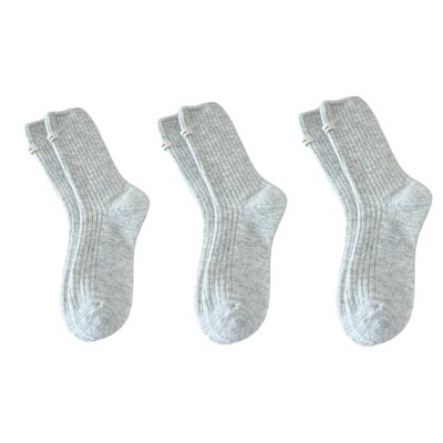 Anna-Kaci Women's 3-Pair Ribbed Crew Socks Set Soft Stretch Knit Fabric Minimal Everyday Comfort Socks - Beige