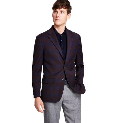 Tommy Hilfiger Mens Modern Fit Plaid Sport Two Button Blazer Jacket