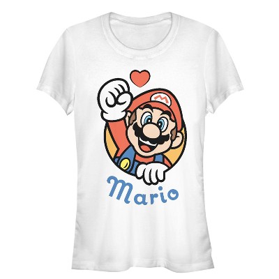 Juniors Womens Nintendo Mario Heart Portrait T-Shirt
