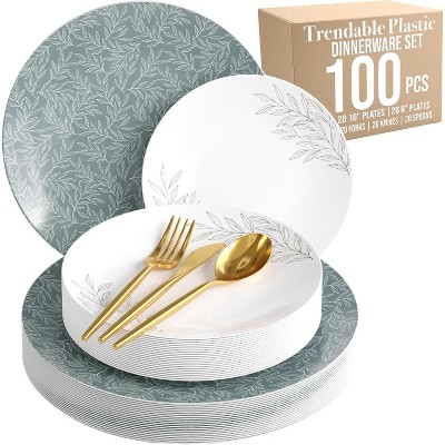 Trendables Wedding Disposable Dinnerware Set with Elegant Plates and Gold Cutlery