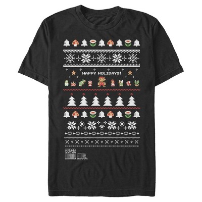 Men's Nintendo Ugly Christmas Super Mario Happy Holidays T-Shirt