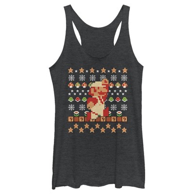 Women's Nintendo Ugly Christmas Super Mario Pixel Racerback Tank Top