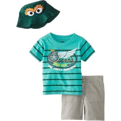 Sesame Street Infant Boys' 3-Piece T-Shirt and Shorts Set with Bucket Hat