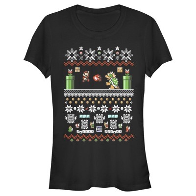Juniors Womens Nintendo Ugly Christmas Super Mario T-Shirt
