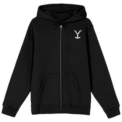 Yellowstone Logo Long Sleeve Men's Black Zip-Up Hooded Sweatshirt