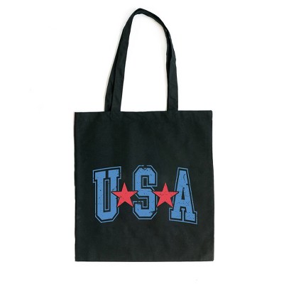 City Creek Prints Varsity USA Red Stars Canvas Tote Bag - 15x16 - Black