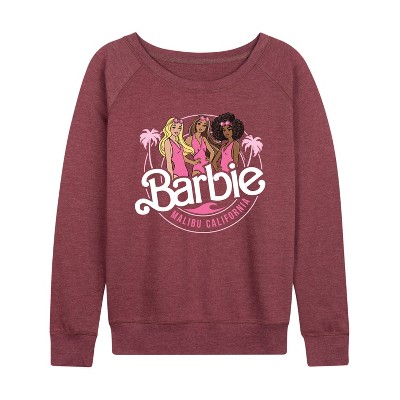 Women's - Barbie - Malibu California Lightweight French Terry Wide Neck Long Sleeve Graphic Shirt