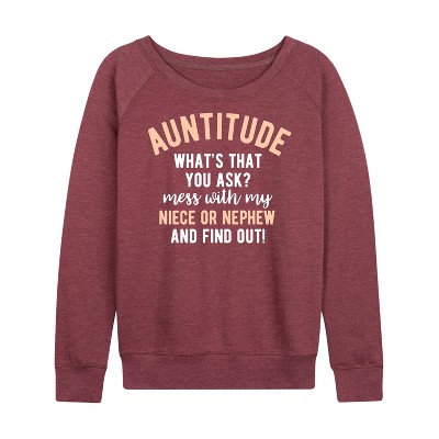 Women's - Instant Message - Auntitude Lightweight French Terry Wide Neck Long Sleeve Graphic Shirt