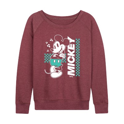 Women's - Disney - Mickey Mouse Evolution Lightweight French Terry Wide Neck Long Sleeve Graphic Shirt