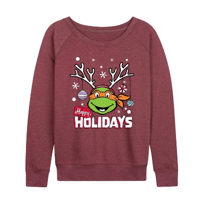 Women's - Teenage Mutant Ninja Turtles - Happy Holidays Lightweight French Terry Wide Neck Long Sleeve Graphic Shirt