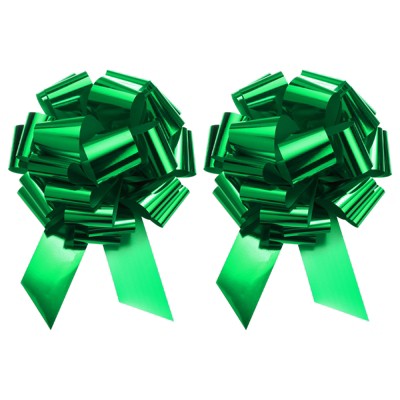 Unique Bargains Bright Durable Metallic Gift Wrapping Large Pull Bow for Wedding 2 Pcs Lawn Green 24 inch