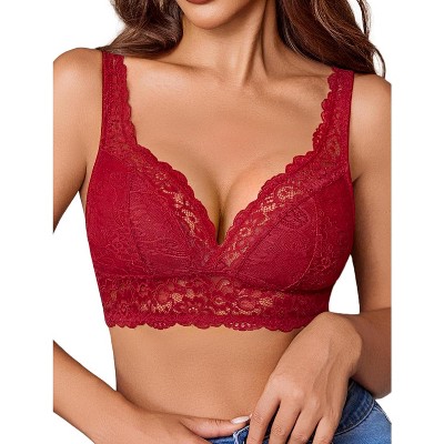 Avidlove Bras for Women Floral Lace Bralettes Deep V Bras Cross Back Longline Bralette No Padded