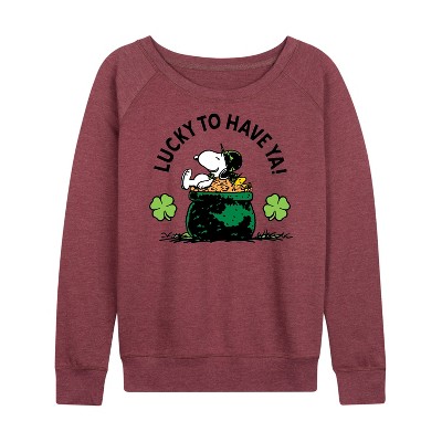 Women's - Peanuts - Love Snoopy Lightweight French Terry Wide Neck Long Sleeve Graphic Shirt