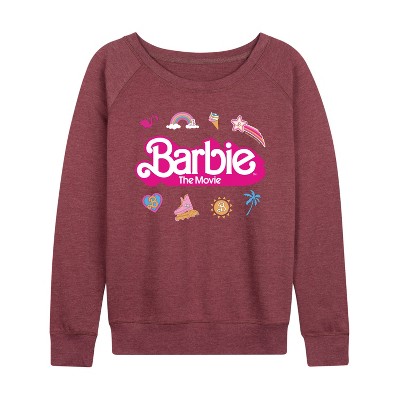 Women's - Barbie - Movie Logo Icons Lightweight French Terry Wide Neck Long Sleeve Graphic Shirt
