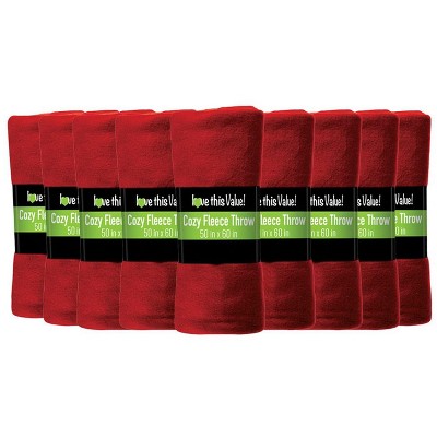 Lexi Home Fleece Throw Blankets, Red - Set of 12