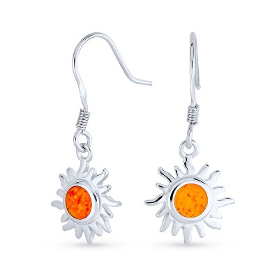 Bling Jewelry Irradiance Green Or Orange Fire Created Opal Summer Fun Sunburst Dangle Drop Earrings .925 Sterling Silver Fish Wire
