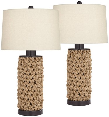 360 Lighting Lynn Country Cottage Buffet Table Lamps 26 3/4" High Set of 2 Beige Wood White Drum Shade for Bedroom Living Room Bedside Nightstand Kids
