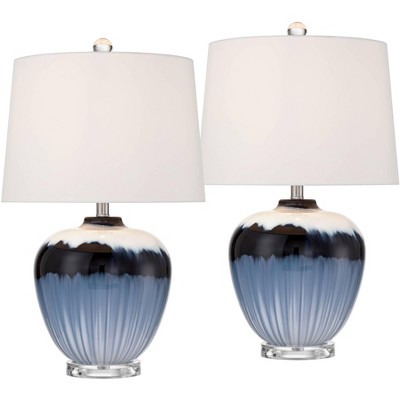 360 Lighting Dylan 27 1/2" Tall Modern Coastal Table Lamps Set of 2 WiFi Smart Socket Blue Glass Living Room Bedroom Bedside Nightstand White Shade