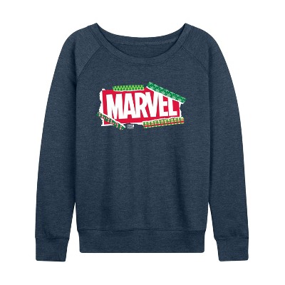 Women's - Marvel - Logo Wrapping Paper Lightweight French Terry Wide Neck Long Sleeve Graphic Shirt