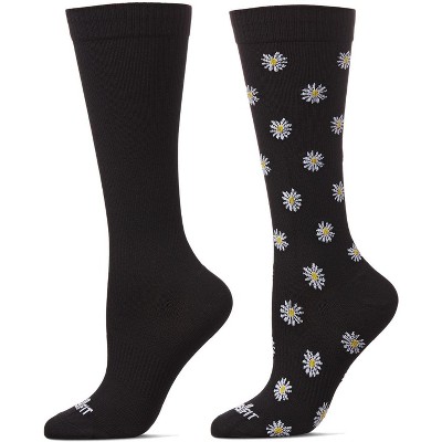 Wellfit Women's 2 Pair Pack Daisy/Solid Compression Socks Black-Black 9-11