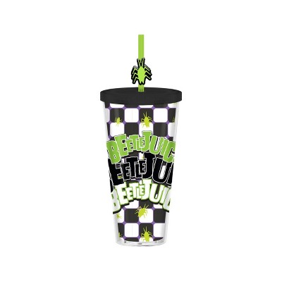 Silver Buffalo Beetlejuice Roach 24z Plastic Cold Cup w/ Lid & Topper Straw