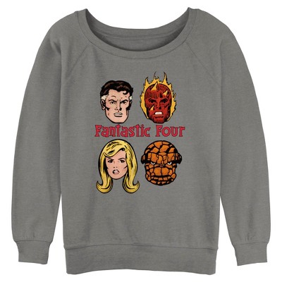 Juniors Womens Marvel: Fantastic Four Retro Faces Sweatshirt