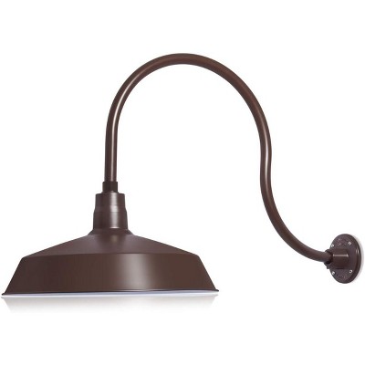 17in. Bronze Outdoor Gooseneck Barn Light Fixture with Long Extension Arm - Wall Sconce Farmhouse 9W 900lm A19 LED Bulb (5000K Cool White)