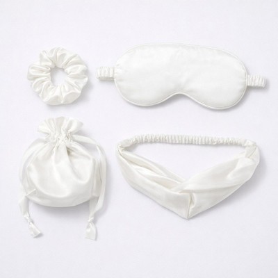 Alilang Women's 4-Piece Satin Sleep Accessory Set with Eye Mask Headband Scrunchie and Drawstring Storage Pouch