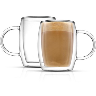 JoyJolt Caleo Collection Glass Coffee Cups - Set of 2 Double Wall Insulated Mug Glasses - 10-Ounces