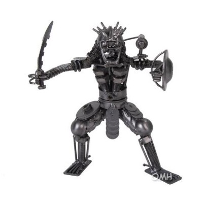 Metal Predator Figurine 8.66" H – Handmade Warrior with Shield & Sword By Old Modern Handicrafts
