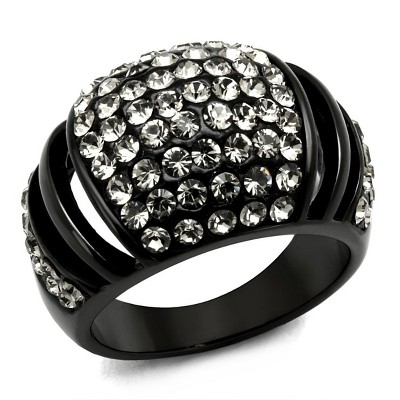 Slickblue Women's Wide Band Ring, Black Stainless Steel with Hematite Synthetic Crystal Clustered Pave, Sizes 5–10