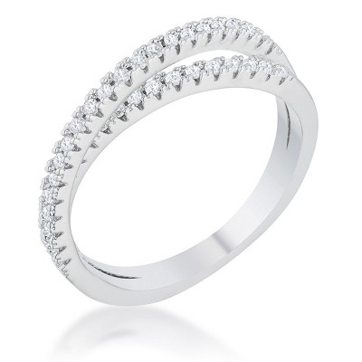 Slickblue 0.4ct Clear CZ Rhodium Intertwined Simple Ring for Women, Elegant Double Design, Sizes 5-10